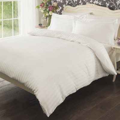 Luxury By Home Sateen Stripe Duvet Set 300 Thread Count White
